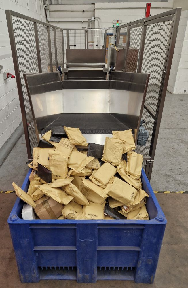 - The tipping cycle is automated so that once the full up position is reached and all of the mail is tipped out, the machine will return to the full down position to allow the empty Roll Cage or Pallet Box to be replaced