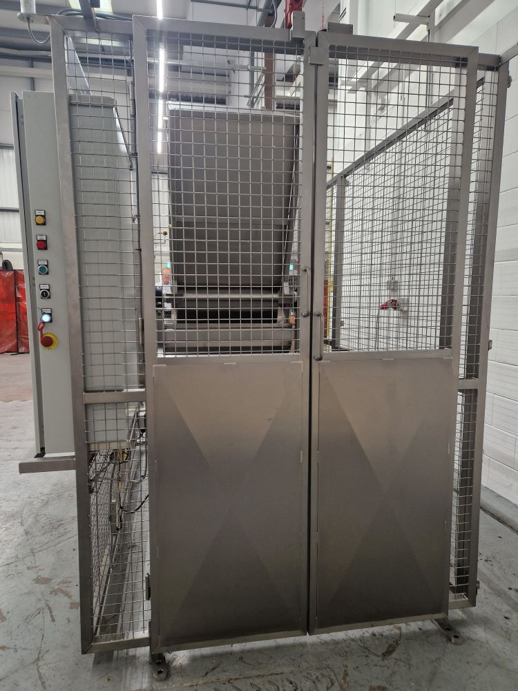 The Roll Cage Tipper control sequence is as follows:-- The Roll Cage or Pallet Box is loaded into the Roll Cage Tipper and the Guard Door closed