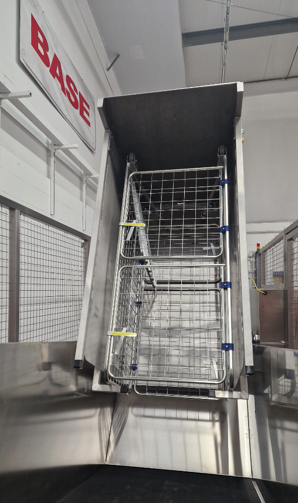 - The Laundry Cart is loaded into the Laundry Cart Tipper and the Guard Door closed